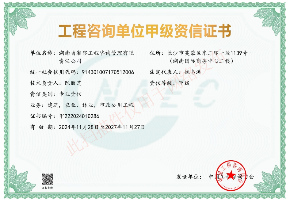 喜報|湘咨管理喜獲市政公用工程施工總承包資質【貳級】